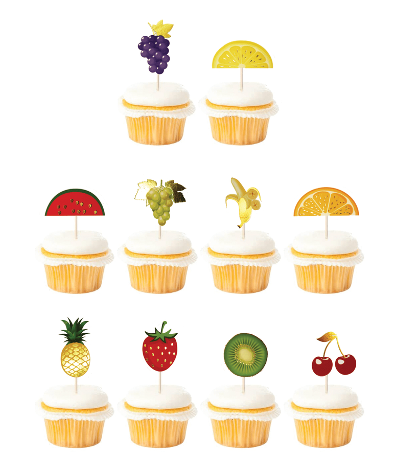 Minik ama etkili bir dokunuş! Ananas, karpuz, çilek, limon gibi renkli meyve figürleriyle süslenmiş bu kürdanlar; cupcake, kanepe, mini sandviç ve atıştırmalıklarınıza eğlenceli bir hava katıyor. Yaz partileri, doğum günleri ve tropik temalı kutlamalar için ideal!