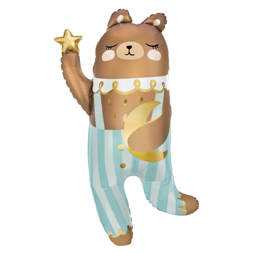 Gökyüzünden gelen bu tatlı ayıcık partinize sihir katmaya hazır! Ay ve yıldız detaylarıyla süslenmiş, pijamalı sevimli ayıcık folyo balon; bebek doğumları, 1 yaş kutlamaları, uyku temalı partiler ve fotoğraf çekimleri için mükemmel bir dekor! Hem kız hem erkek çocuklar için uygundur.