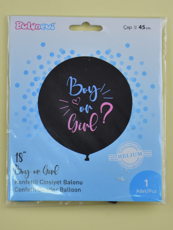 Paket içerisinde 1 adet Boy or Girl Cinsiyet Belirleme Balonu (mavi) bulunmaktadır.