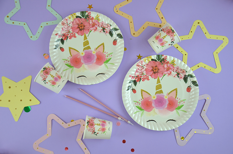 Çiçekli Unicorn Tabaklar 23 cm 8 adet