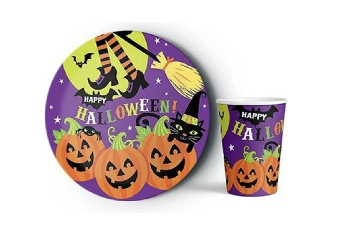 Paket içerisinde Halloween Tabak 23 cm 8 adet Halloween bardak 8 adet bulunmaktadır.