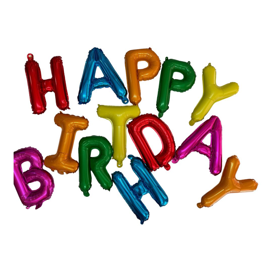 Paket içerisinde 1 adet Happy Birthday Yazılı Renkli folyo balon bulunmaktadır.