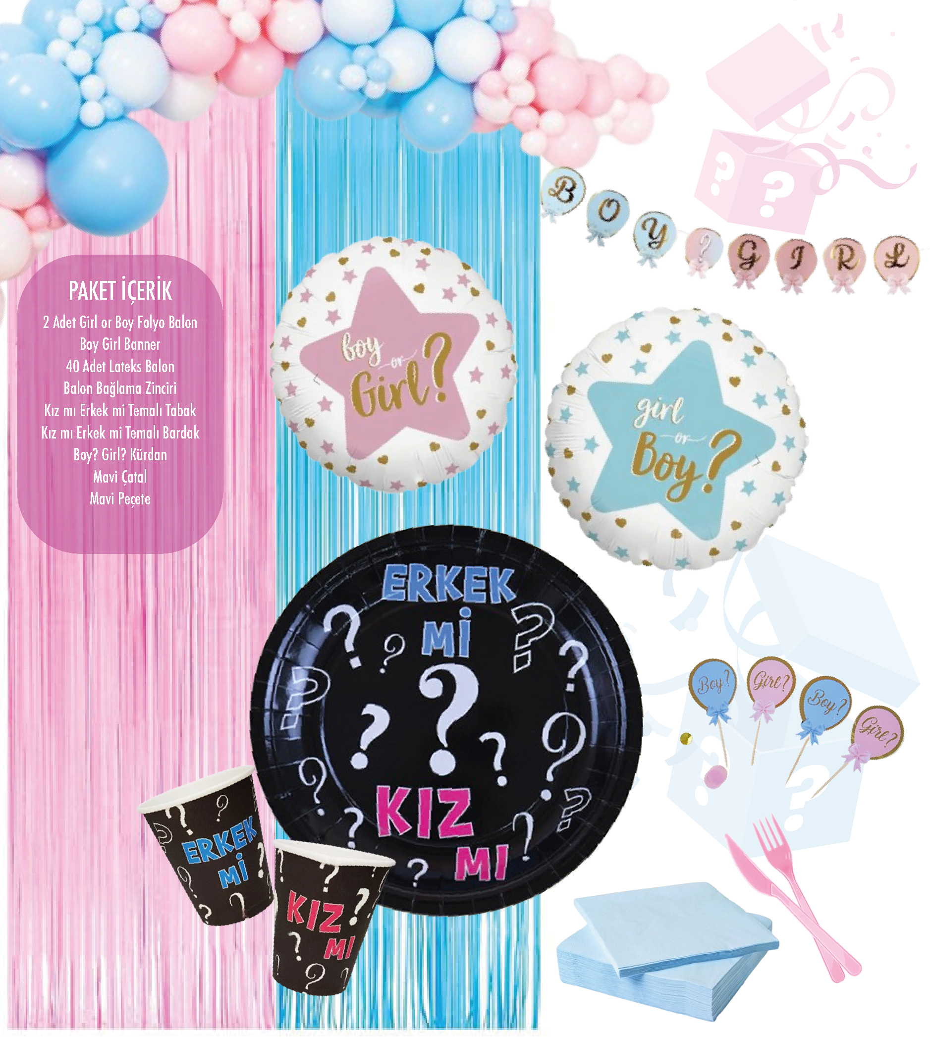 🎀💙 Kız mı? Erkek mi? Parti Seti – Sürpriz Anların En Tatlı Hali! 🎉