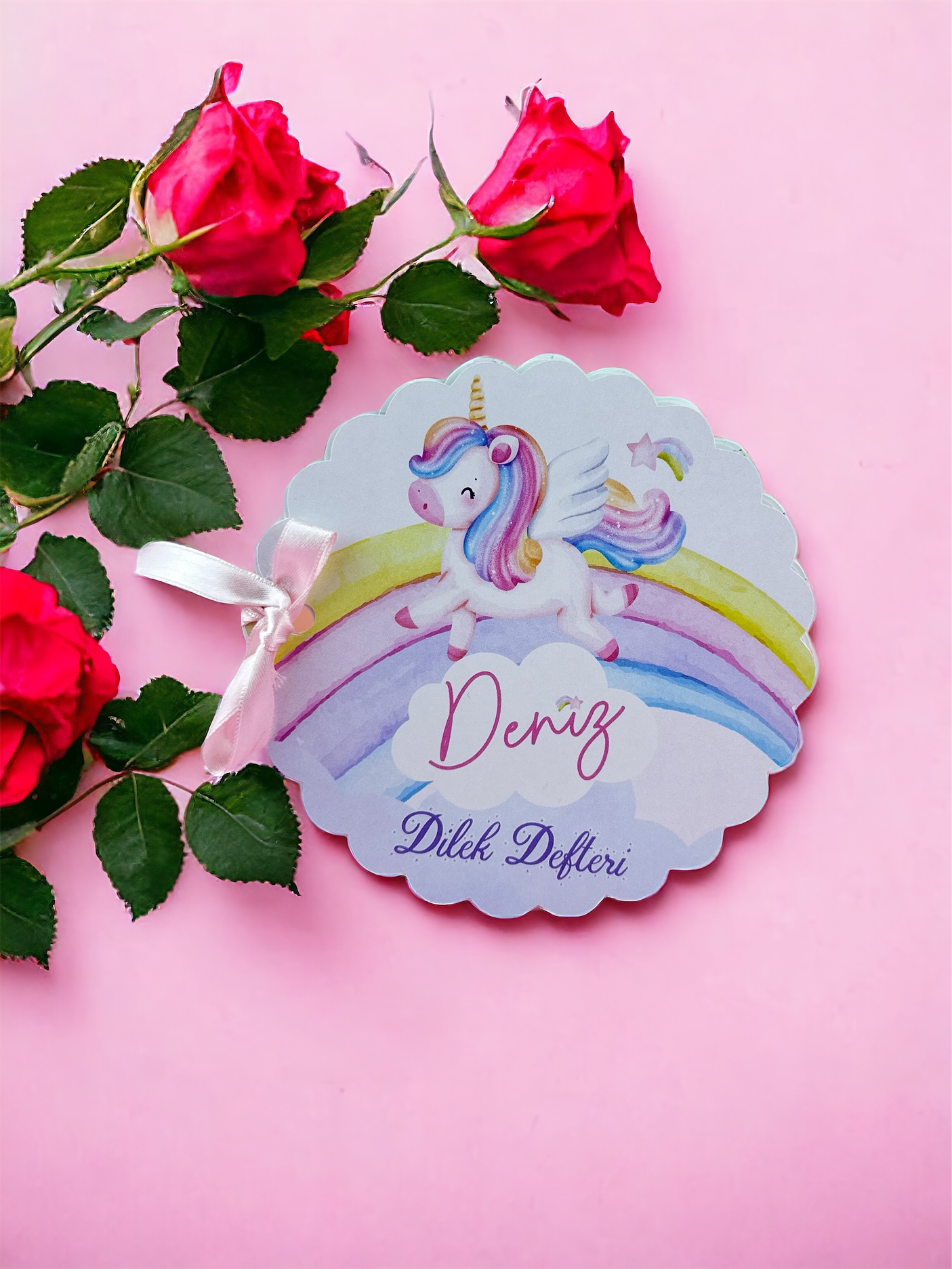 Dilek defterinin üzerinde olan kurdele rengi stok durumuna göre farklı olabilir. Konsepte uygun şekilde seçilir.