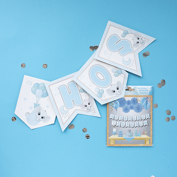 Mavi Fil Temalı hoşgeldin bebeğim bayraklar.