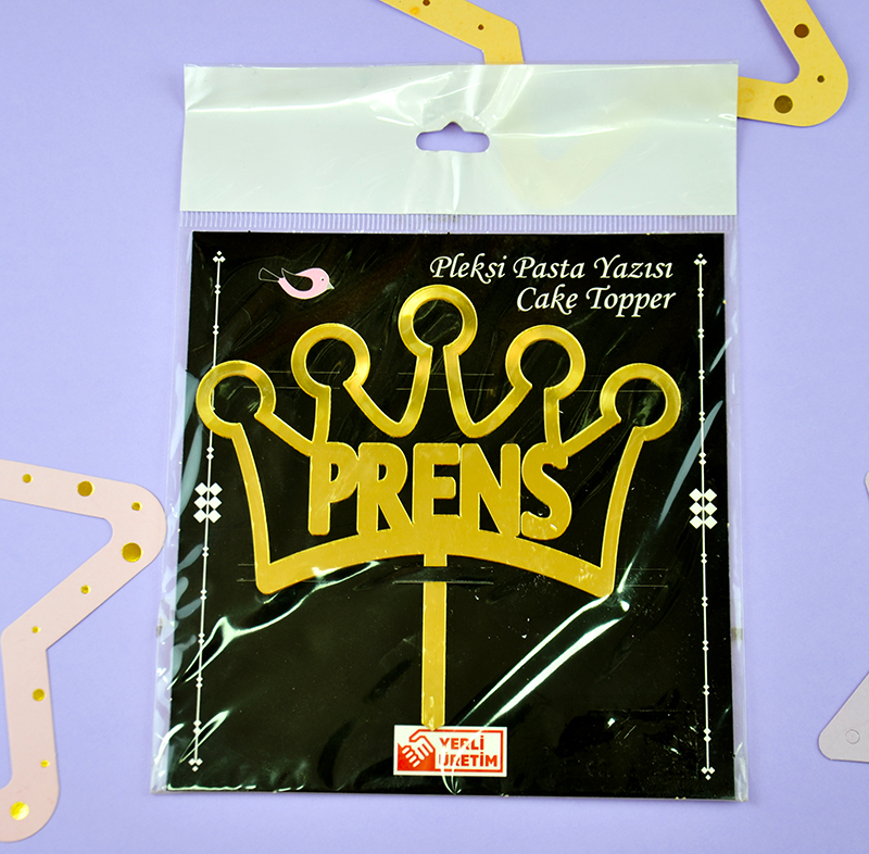 Paket içerisinde 1 adet Prens yazılı Gold pleksi topper bulunmaktadır.