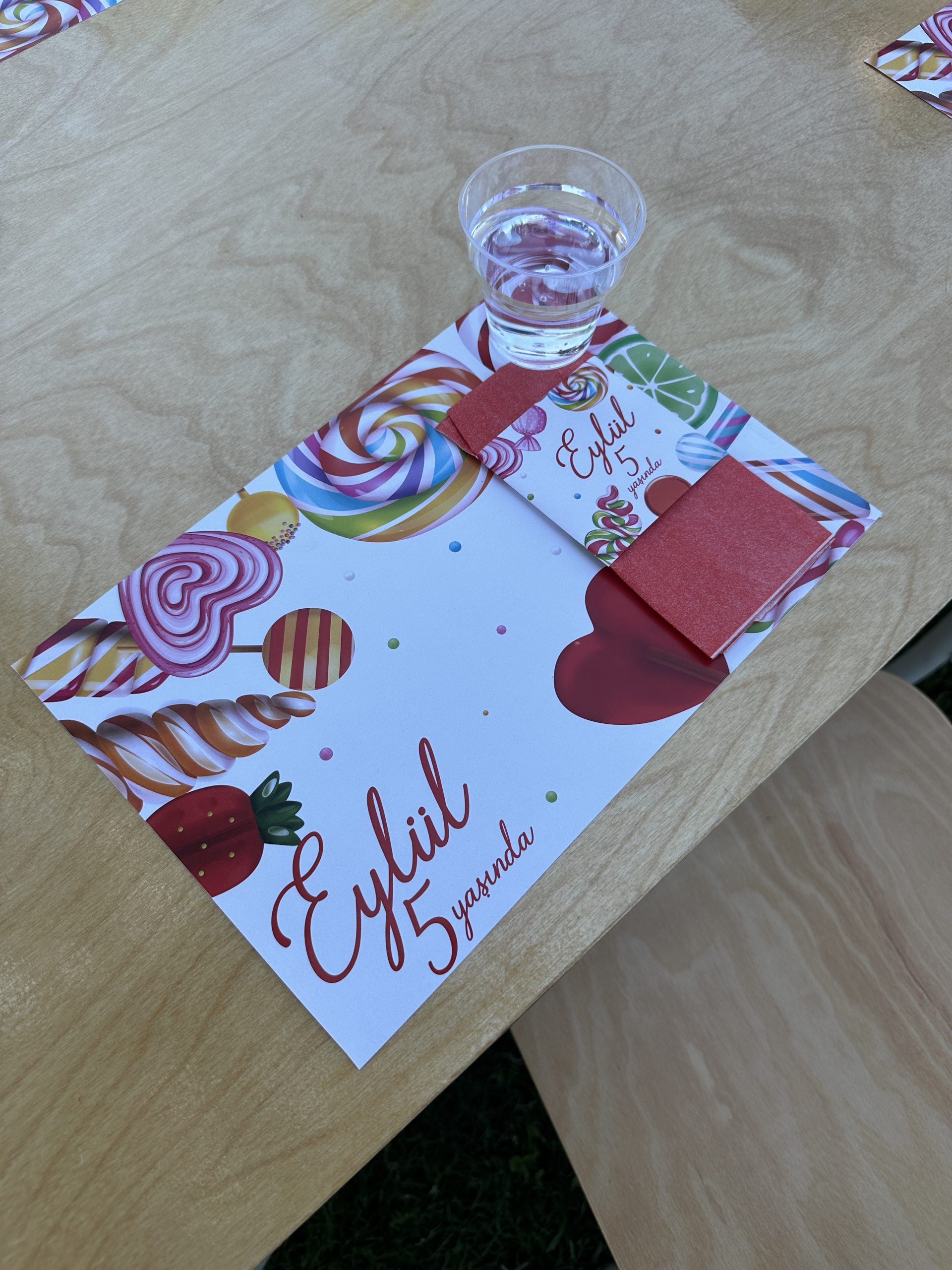 “Sepet” kısmında çocuğunuzun İSİM ve YAŞ bilgileri ekleyiniz. Ebatlar : 310×230 mm 8 adet İnce kuşe kağıttan hazırlanmaktadır Genel olarak tabakların altında servis olarak sunulur