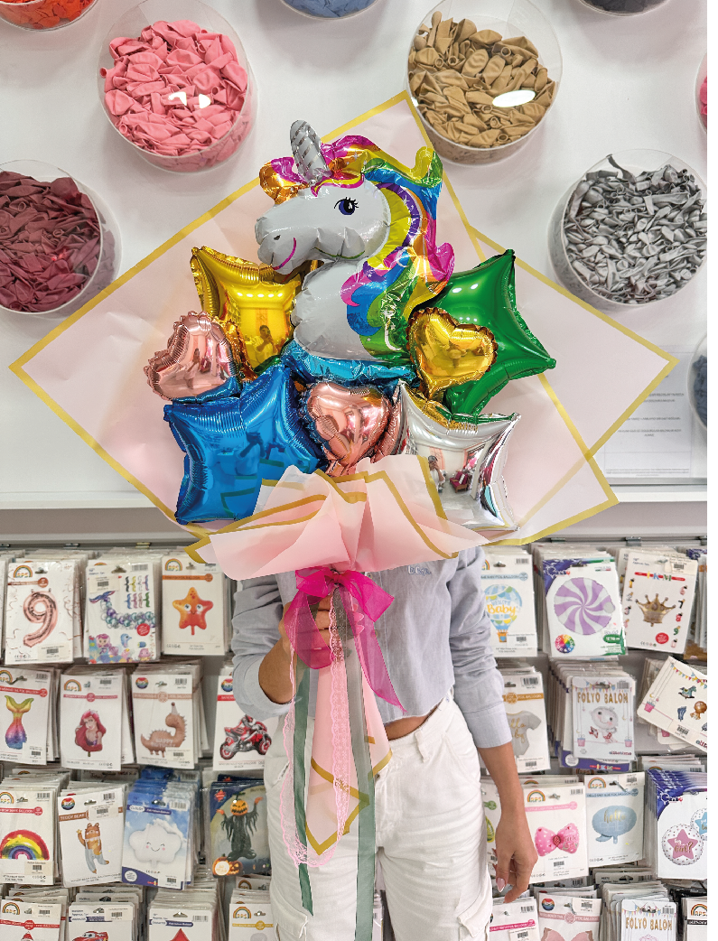 Büyülü bir dünyanın kapılarını aralayın! Rüya Gibi Unicorn Buketi, rengarenk balonları ve göz alıcı unicorn figürüyle sevdiklerinize sihirli bir hediye sunuyor. Doğum günlerinden özel kutlamalara kadar her anı unutulmaz kılmak için tasarlanan bu buket, hayallerle dolu bir atmosfer yaratıyor. Pastel tonların zarif uyumu ve ışıltılı detaylarla mutluluğu paylaşmanın en eğlenceli yolu!