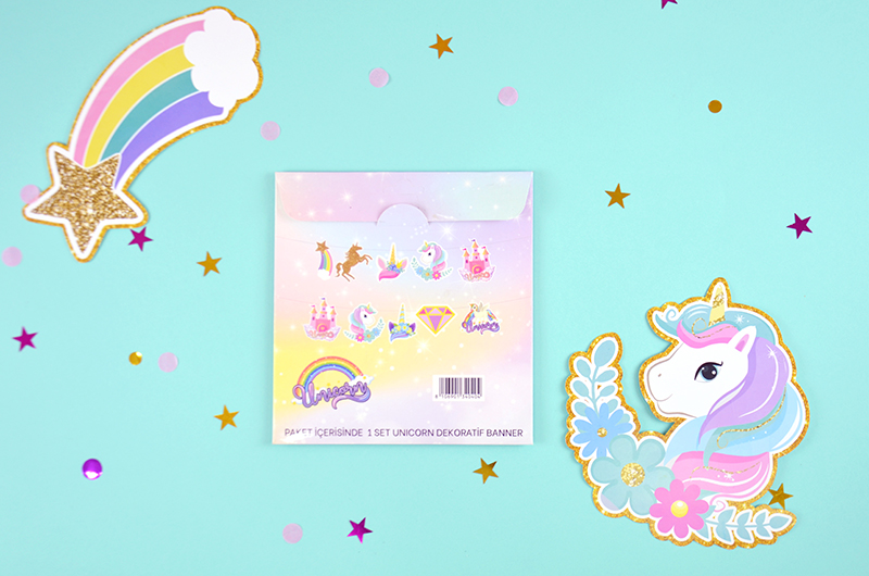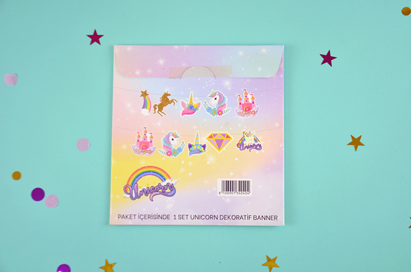 Paket içerisinde unicorn figürlerden oluşan 1 adet bayrak bulunur.