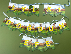 Uzay Figürlü parti Bayrakları. Fotoğraftaki diğer ürünler görsel amaçlıdır, fiyata dahil değildir.